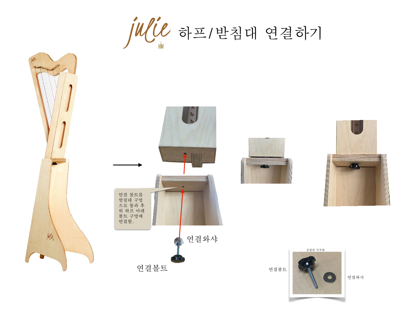 연결볼트, 와샤는 받침대 구매 시 함께 제공됩니다.