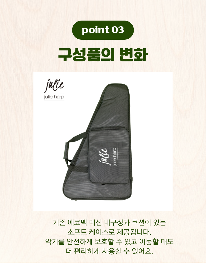 줄리하프는 40년 경력의 하피스트가 심혈을 기울여 만든 하프이며,