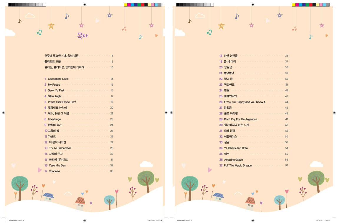 ‘입문용 하프 연주곡집’은 총 37곡의 하프연주곡을 담고있으며 입문용 하프교본에 나오는 레슨 순서에 맞춰 연주할 수 있도록
